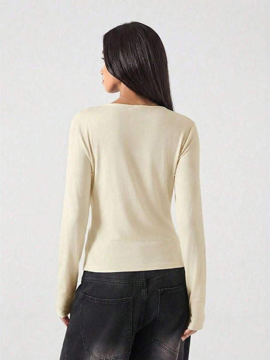 LYSMO Women's Solid Color Long Sleeve Plunging Neck Fashionable Versatile Sexy Blouse