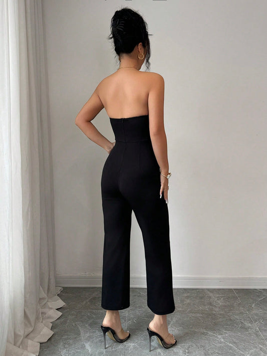 PETITE Women's Sexy Asymmetric Button Decor Bodycon Jumpsuit