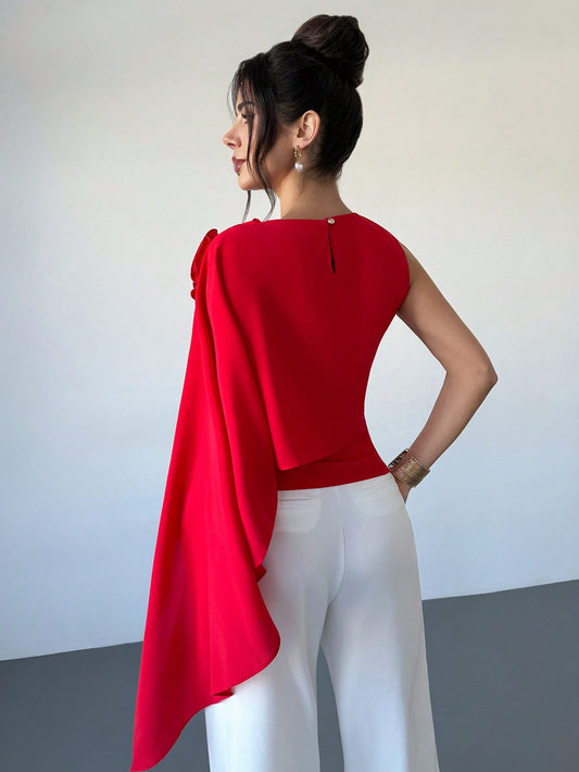 RiviMae Women's Romantic Holiday Wrap Ribbon Floral Decor Sleeveless Blouse