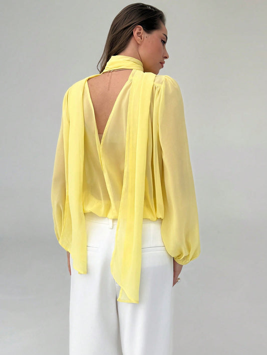 Livesso Tie-Waist Flowy Casual Office Blouse For Women