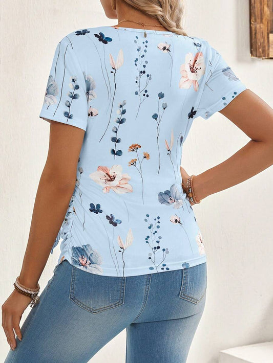 Maternity Floral Print Short Sleeve Knot Front T-Shirt For Holiday