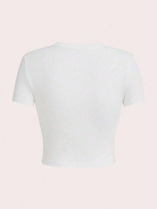 DAZY Elegant Lace Trim Fitted Short Sleeve T-Shirt For Women, Suitable For Party, Valentine's Day, Spring/Summer