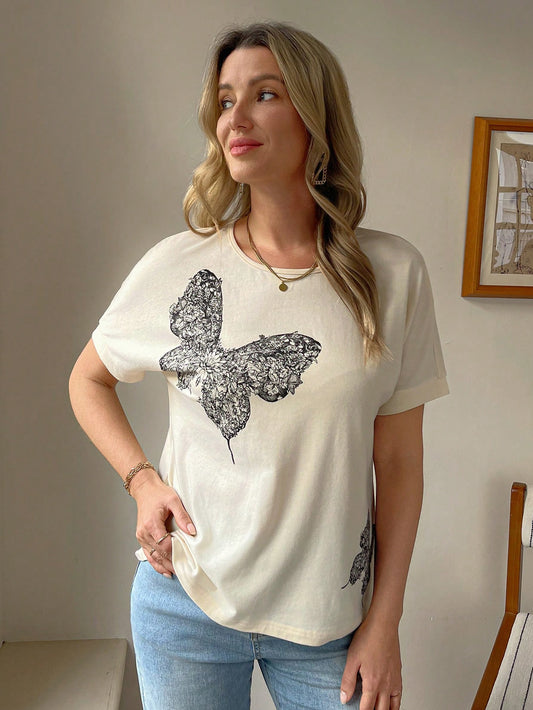 Livesso Women's Butterfly Print Loose Short Sleeve T-Shirt