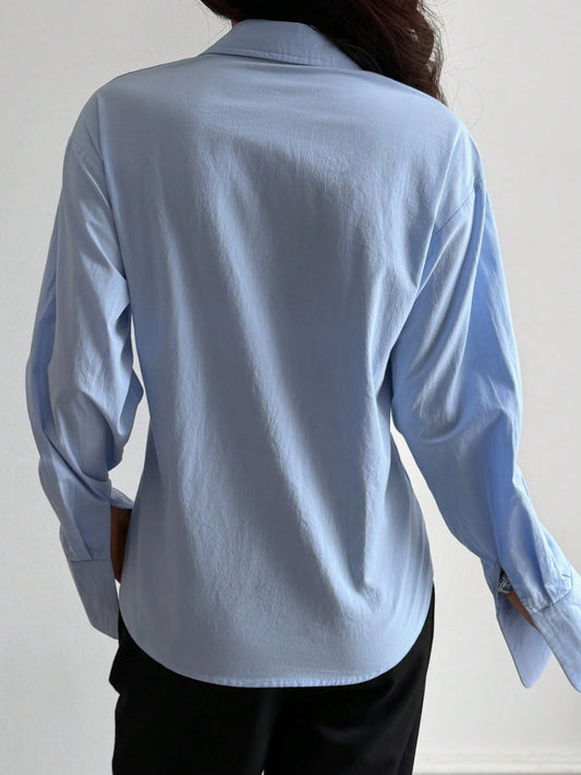 Livesso Women's Casual Loose Fit Pure Cotton Shirt With Turndown Collar