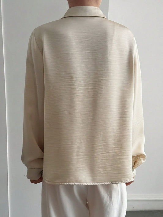 Livesso Satin White Formal Commuter Pleated Casual Blouse For Women