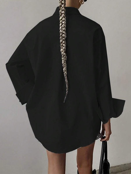 Women Turn Down Collar Long Sleeve Shirt, Simple Fashion Versatile Loose Casual Blouse